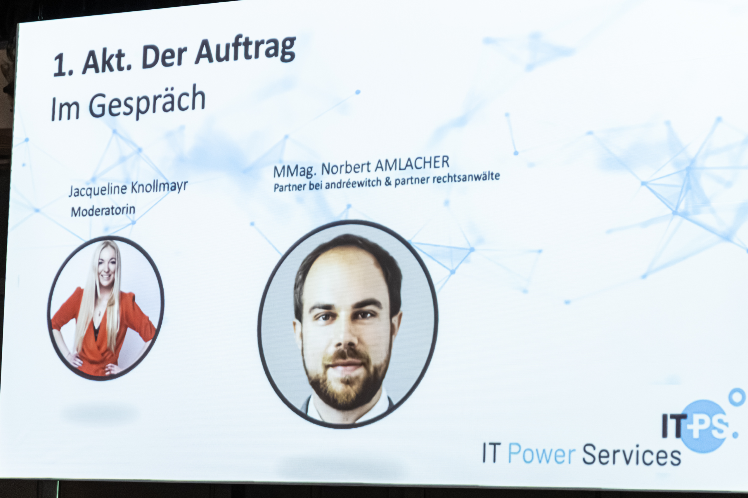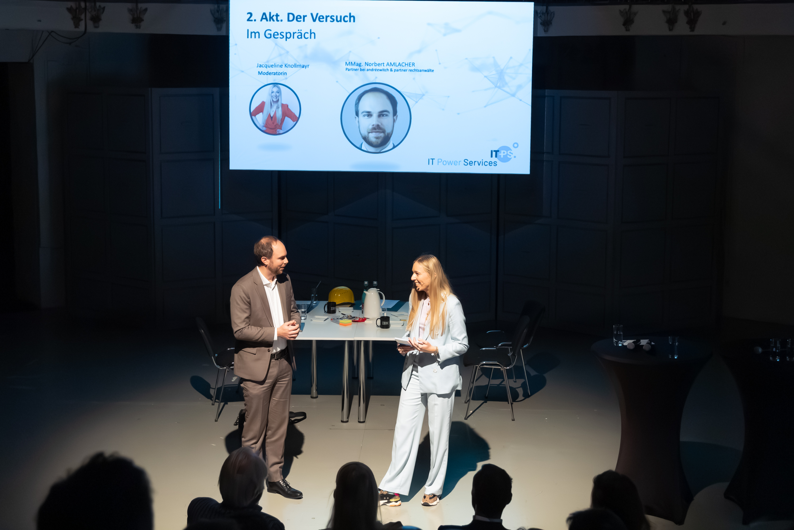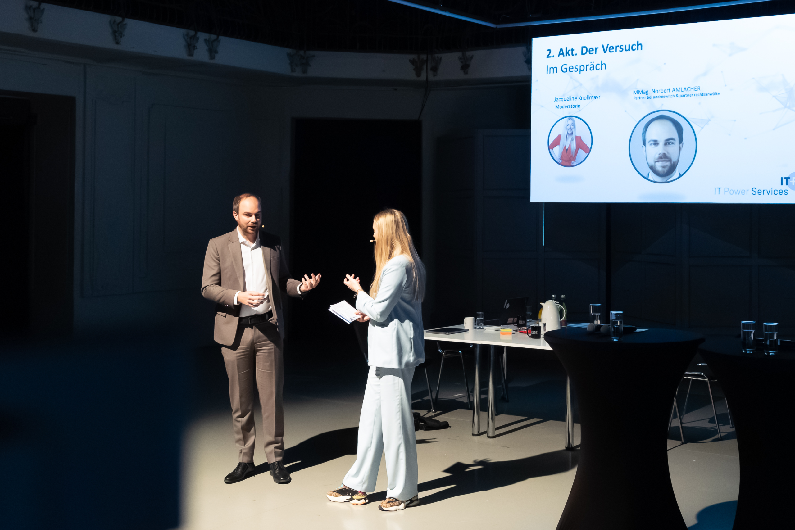 Rechtsanwalt Norbert Amlacher (partner bei andréewitch & partner rechtsanwälte) holte das Publikum nach jedem Akt auf den Boden der Tatsachen zurück – mit klaren Worten zu DSGVO, Compliance und Haftungsfragen.