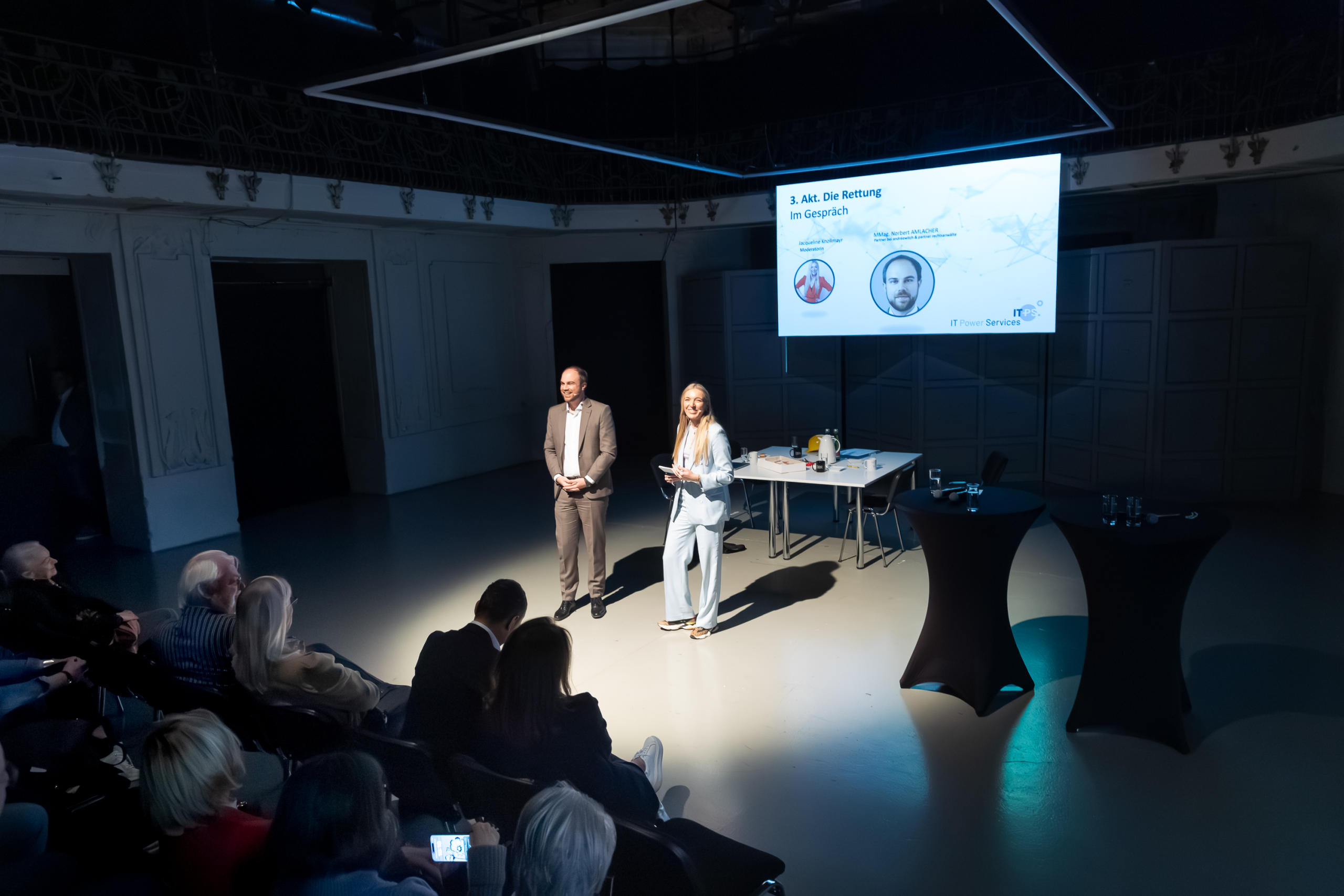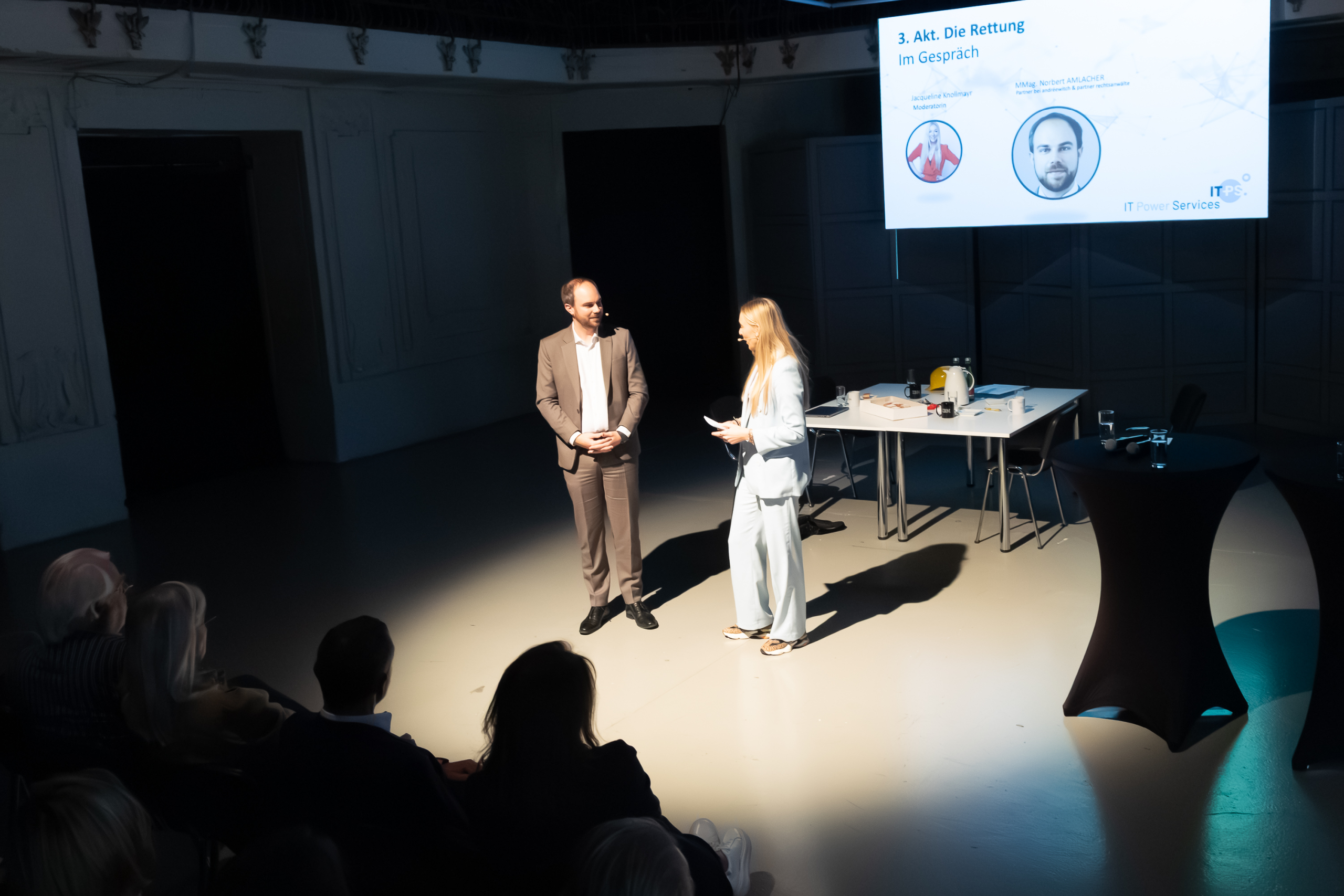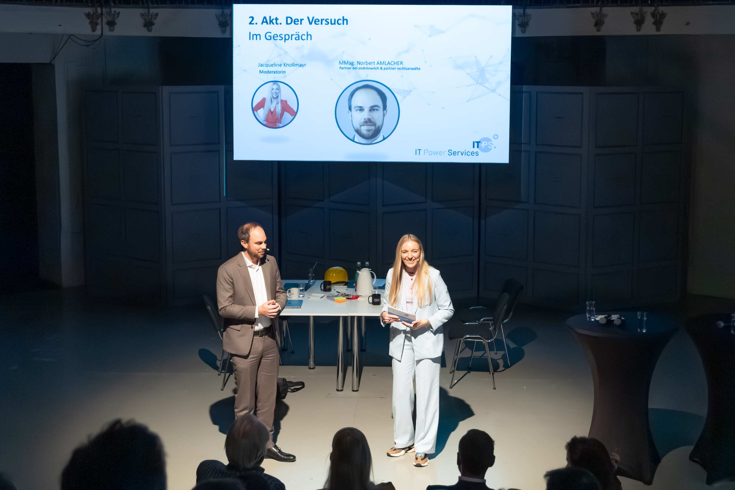 Rechtsanwalt Norbert Amlacher (partner bei andréewitch & partner rechtsanwälte) holte das Publikum nach jedem Akt auf den Boden der Tatsachen zurück – mit klaren Worten zu DSGVO, Compliance und Haftungsfragen.