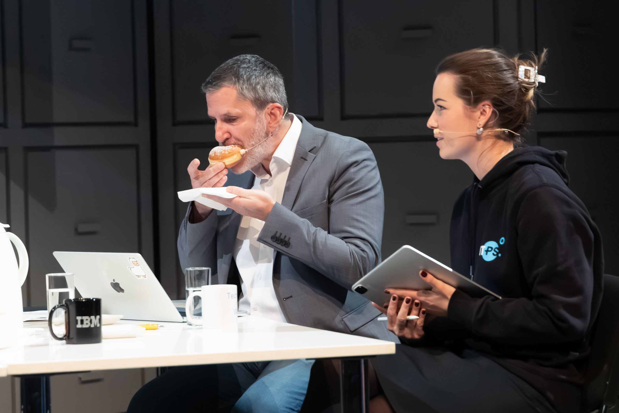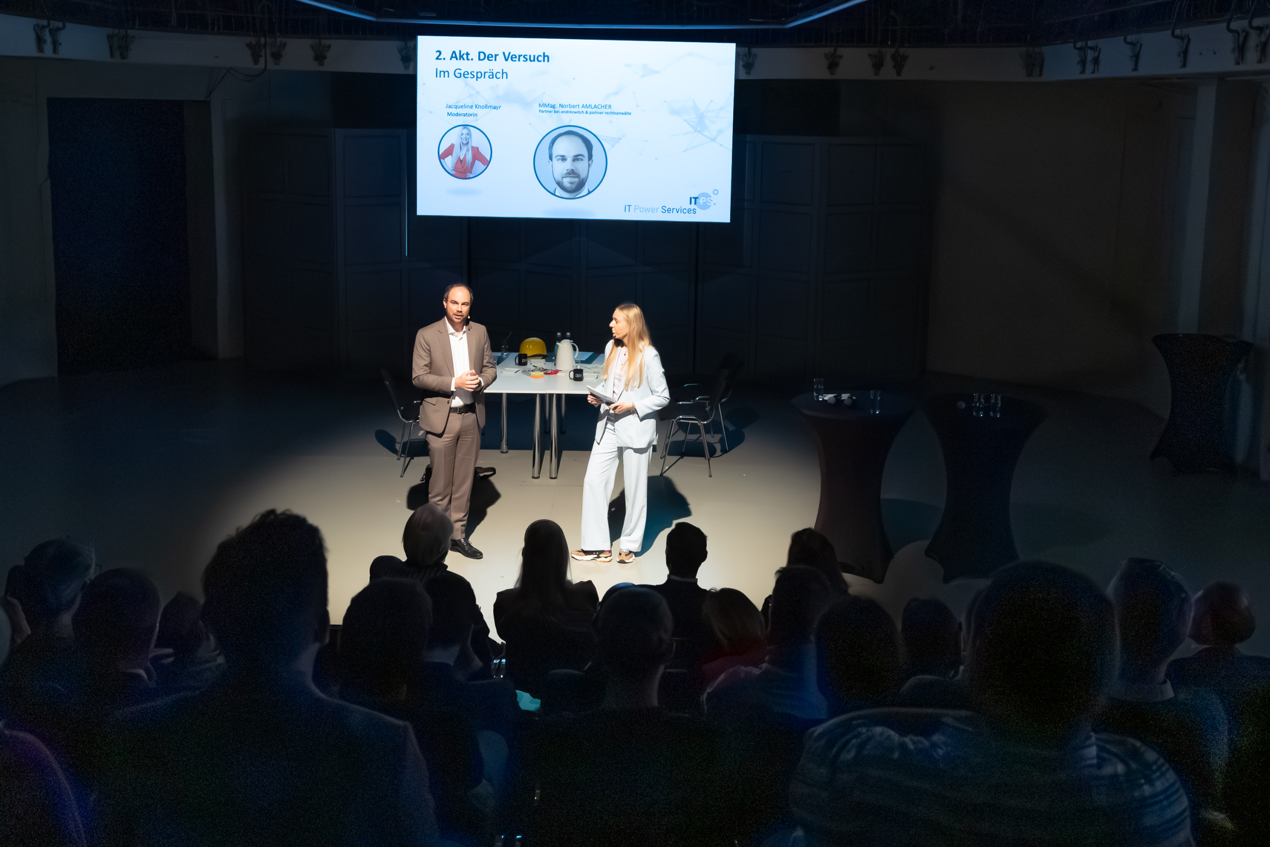 Nach dem Theaterstück diskutieren Patrica Neumann und Werner Höger, CEO der IT-Power Services, über: